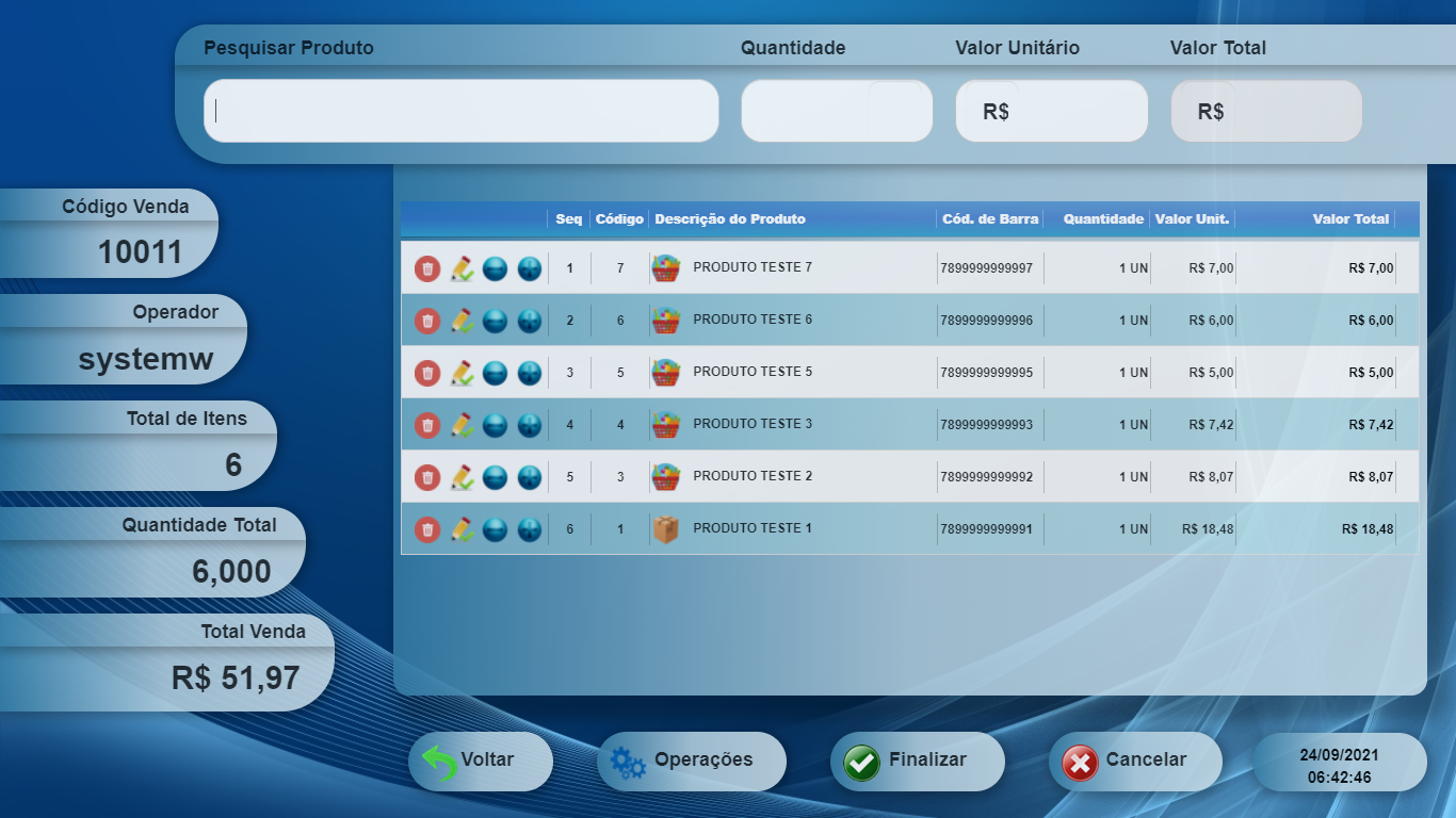 Consulta de Produtos, Relatório de Produtos, Cadastro de Produtos, Alteração de Preço...